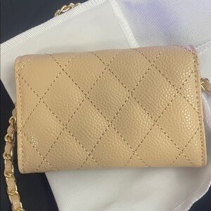 😍 Gorgeous & elegant Chanel ? beige tan quilted mini wallet on chain bag