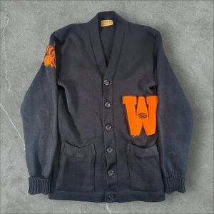 Vintage Appalachian Athletic House Cardigan Mens Small Black 1940s 50s Letterman