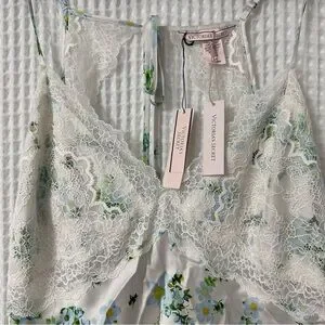Brand new with tags Victorias Secret Honey Bee Floral White Lace Plunge Open Back Slip Dress
