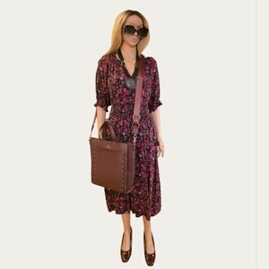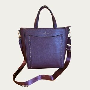 100th Anniversay London Fog Sophia Studded Saffiano Vegan Leather Tote Bag In Plum with Crossbody Strap