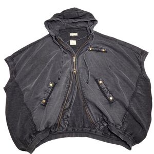 We The Free What’s Next Hooded Poncho Vest Washed Black Oversized Medium NWT