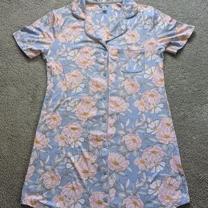 Stylish floral print nightgown featuring💙 blue and🌷 pink hues with gold accents. Comfy and cozy, and made of super soft cotton. Perfect for a casual day lying around the house. New Without Tags (NWOT) yet never worn!