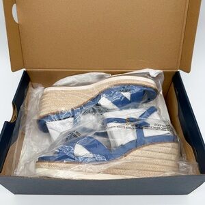 Cole Haan Cloudfeel Silvee Espadrille Wedge Sandals Blue Suede Comfort 8.5 NEW