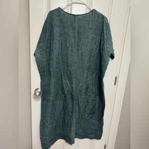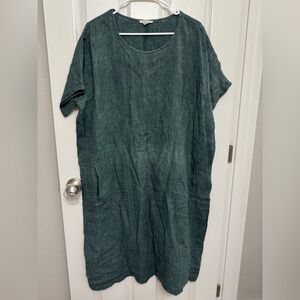 Eileen Fisher organic linen dress in a beautiful muted green/teal tone.