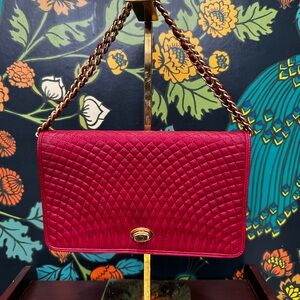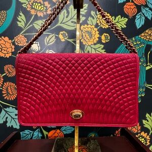 Vintage 1980s Bally Red Quilted Lambskin Leather Chain Shoulder / Crossbody Bag