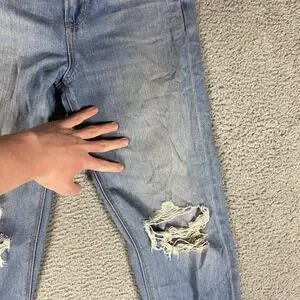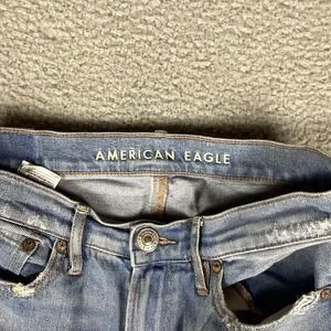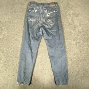 American Eagle Jeans Womens 2 Blue Baggy Jean High Rise Distressed Light Wash