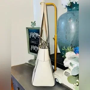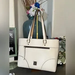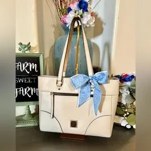Dooney and Bourke Leather Bone Tote Bag, Gold hardware & blue accent scarf