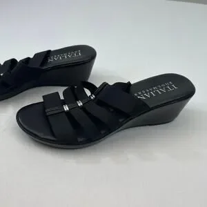Italian Shoemakers Black Elastic Sandals Womens Size 8