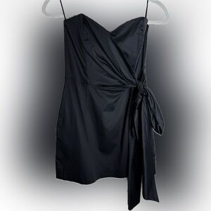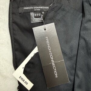 Brand new with tags French Connection black sleeveless mini cocktail dress. Features a flattering V-neckline with an adjustable side tie waist that cinches perfectly for a tailored look. Structured yet comfortable with a slight stretch, making it ideal for work, evenings, or elevated casual wear.