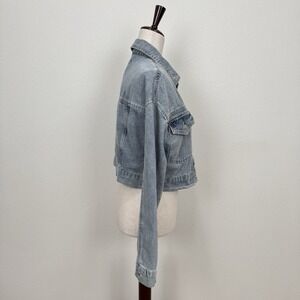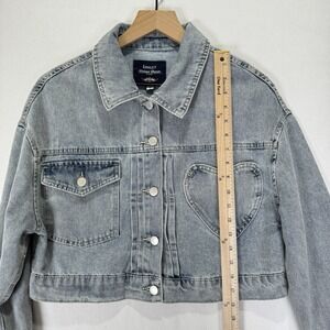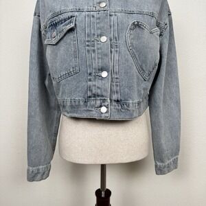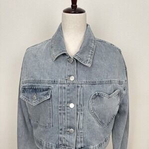 Ashley Vintage Charm Jacket Womens Small Blue Crop Heart Patch Y2K Light Denim
