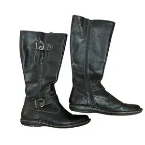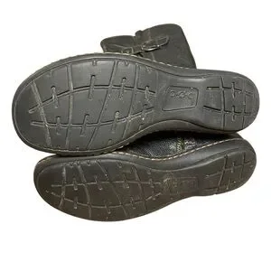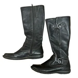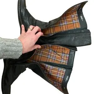 Classic black leather boots with buckle accent. Perfect for winter wear. Very cool pattern on the lining.