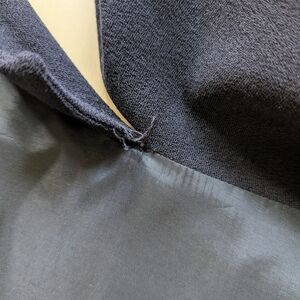 Sleep work jacket. One cuff is a little lax and there is a little fabric snagging/holes in the front, see photos. A spot of stitching has come loose and could use a little mend.