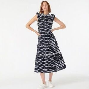 J. Crew Floral Embroidered Flutter Sleeve Tiered Midi Dress Navy XSP Cottage