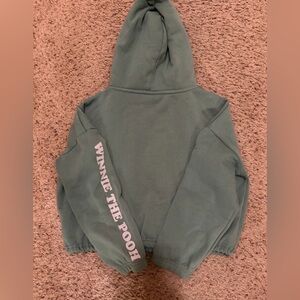 This sage green Winnie the Pooh zip-up hoodie features an adorable Pooh graphic on the chest and bold “Winnie the Pooh” lettering down the sleeve. Soft fleece lining makes it perfect for lounging or casual days out.