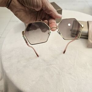 NIB Bulgari Hexagonal Sunglasses - Gold and Pink