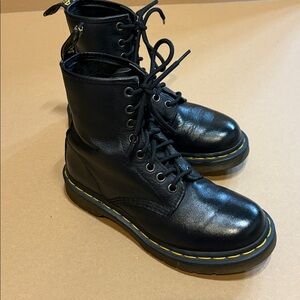Classic black leather boots with signature yellow stitching. Durable and stylish. Worn, but still in great condition and perfectly intact. Ready to ship same business day. Smoke free!