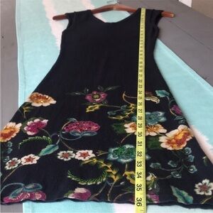 Desigual, Mari, A-line dress. Knit dress with front and back V-neckline. Floral, sequin detail on the front bottom. Size XS. See photos for measurements to ensure fit. Preowned condition.