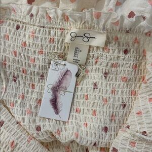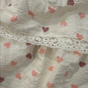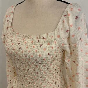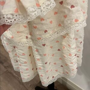 NEW Jessica Simpson Cream Pink Heart Mini Dress Ruffles Lace Large Smocked