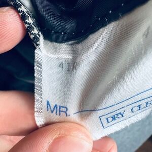 Two blemishes notated in the pictures one at the bottom front and right front chest area. They're very small and barely noticeable. There's also no size or materials tag it appears to be the size listed.