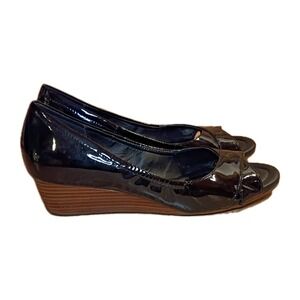 Cole Haan Air Open-Toe Wedge Patent Leather Shoes Black Women's 7 B