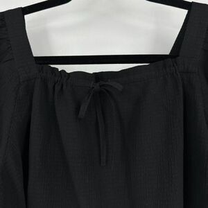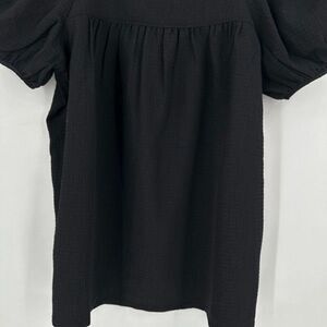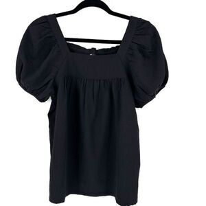 Madewell Seersucker Bubble-Sleeve Top Puff Sleeve Black Blouse XS Boho romantic