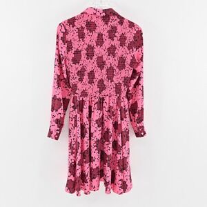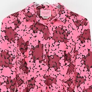 KATE SPADE Bubble Dot Smocked Shirt Dress Size 2 Pink Long Sleeve Retro Preppy