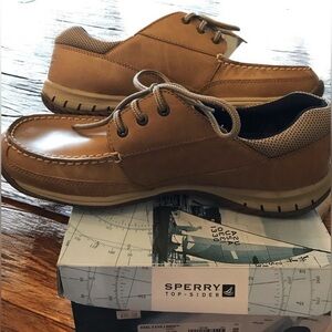y2k NWT Sperry Top-Sider Keel 3 Eye Linen Leather Loafer Boat Shoes sz 11 Vtg