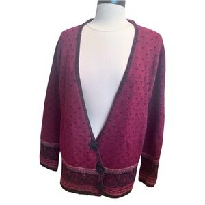 Vtg 90 Susan Bristol Fair isle Wool Red Cardigan Sweater Lg Grandmacore Cottage