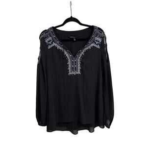 White House Black Market Embroidered Col Shoulder Boho Peasant Blouse Size 0