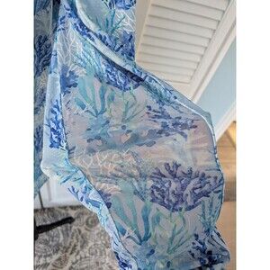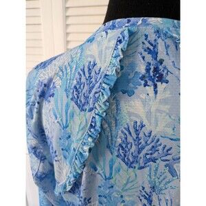X by GOTTEX Top Womens L Blue White Ruffle Mesh Beach Long Slv Crew Shirt UPF50