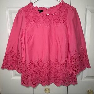 Talbots Eyelet Blouse Top Women M Embroidered Boho Poets Cottagecore Old Money