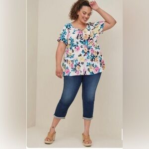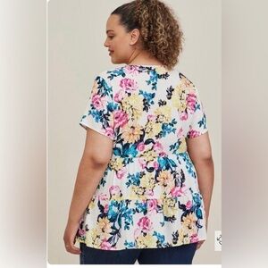 Torrid 1 Short sleeve Floral Color boho pop stretch tunic blouse 1X