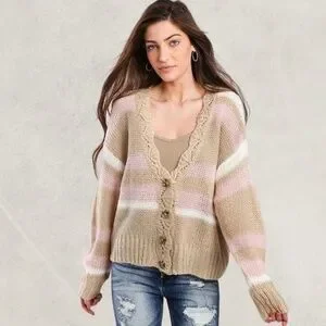 WISHLIST APPAREL Striped Button Front V-Neck Relaxed Sweater Cardigan-M/L NWT