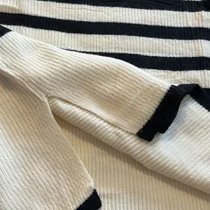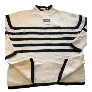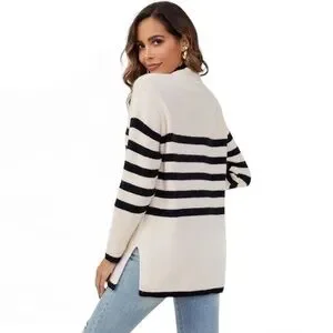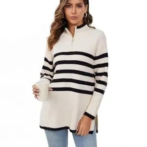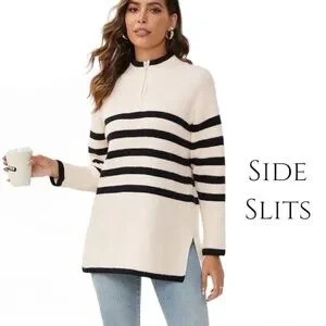 Striped Half Zip Side Slit Relaxed Casual Pullover Sweater