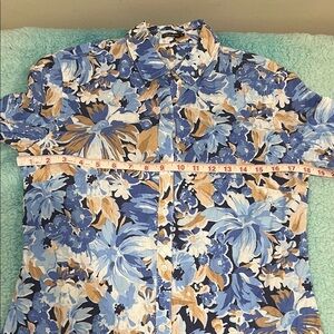 Chic floral shirt with blue and tan design. Ideal for casual wear. Excellent condition