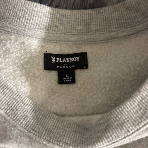 Cozy gray sweatshirt with PLAYBOY logo. Soft and comfortable. Perfect for casual wear.