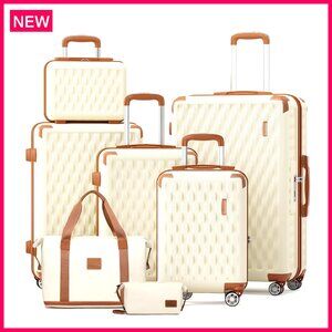 Style: Complete 7-piece luggage set with hard shell suitcases and travel bags