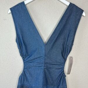 NWT Anthropologie Plenty by Tracy Reese V Neck Open Sides Denim Midi Dress Size XSP