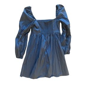 Reformation Women's Michaela Dress Blue Square Neck Puff Sleeve Mini- Size 4