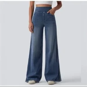 HALARA Flex High Waisted Stripe Wide Leg Jean with Pockets X—LARGE TALL