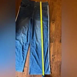 Stylish wide Jeans in dark blue. Features white side stripes.