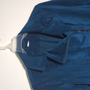 Chico's Women's Jacket Blue Teal Faux Suede Moto Zip Front Pockets Plus Size 14
