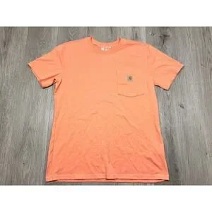 Carhartt Shirt Mens M Pocket Tee Logo Orange Loose Fit Short Sleeve Workwear