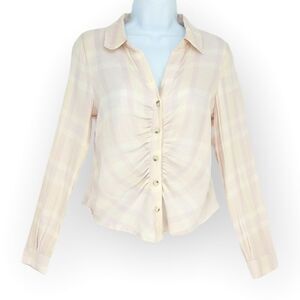 SANCTUARY CLOTHING NWT WOMENS WHISPER PLAID RUCHED BOYFRIEND SHIRT- size M