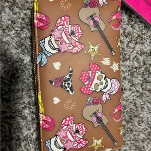 Betsey Johnson Brown Wallet with Pink and Gold Accents
