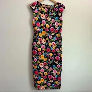 * Beige By ECI Black Floral Scuba Sheath Midi Dress Features: