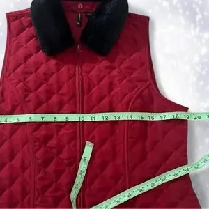 Winter Fashion Red Quilted Vest With Black Faux Fur Collar