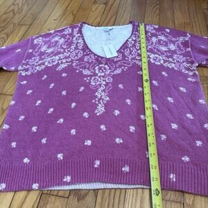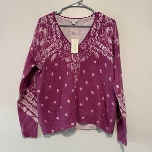 Sundance NWT Pink V-Neck Bandana Print Lisbet Sweater Size Small