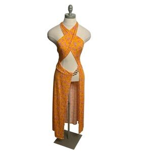 Beach Bunny Swimwear Sadie Orange Floral Midi Dress Beach Coverup Size Medium