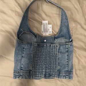 Denim Halter Top with Button Detail